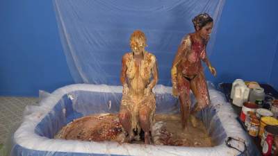 It didn't take us long to get the lights warmed up and Sabrina in the chair ready to have buckets of green and orange slime dumped on her head.